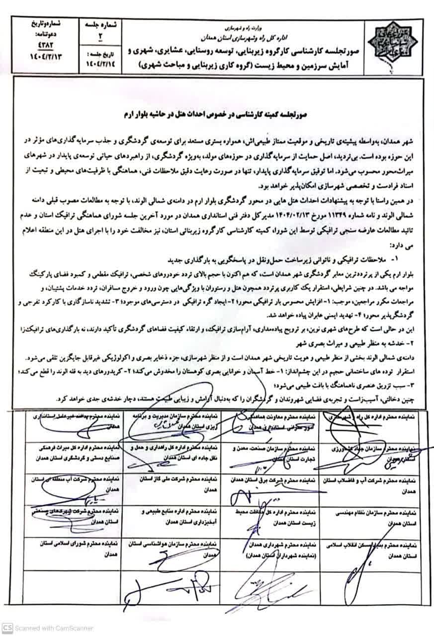 - خدشه به منظر طبیعی و میراث طبیعی شهر: محور ارم بهعنوان یکی از کریدورهای مهم دید و منظر به دامنه شمالی الوند و بخشی از سرمایههای طبیعی و هویتی همدان محسوب میشود که استقرار یک سازه مرتفع در آن میتواند بهطور جدی این منظر را مخدوش سازد.