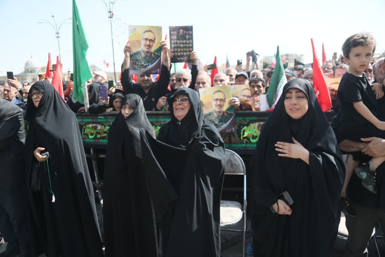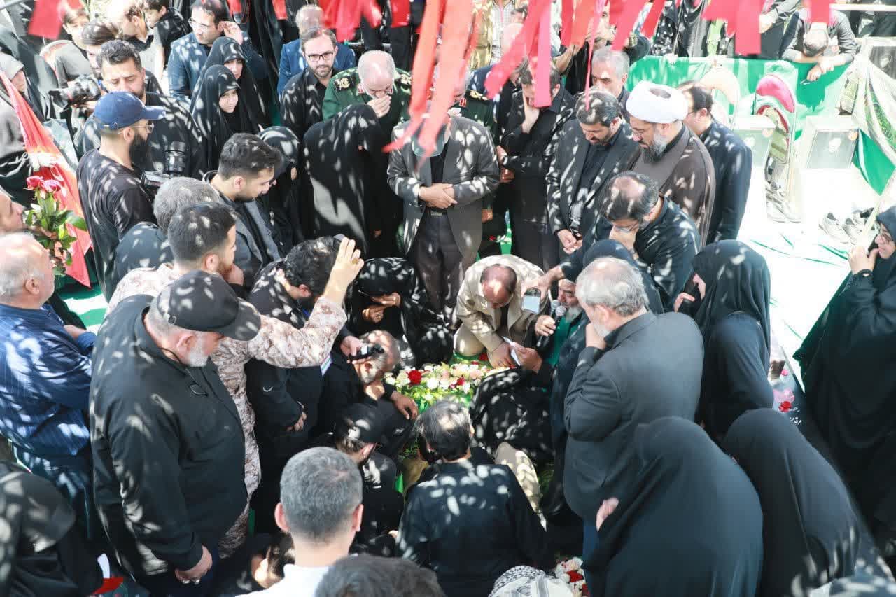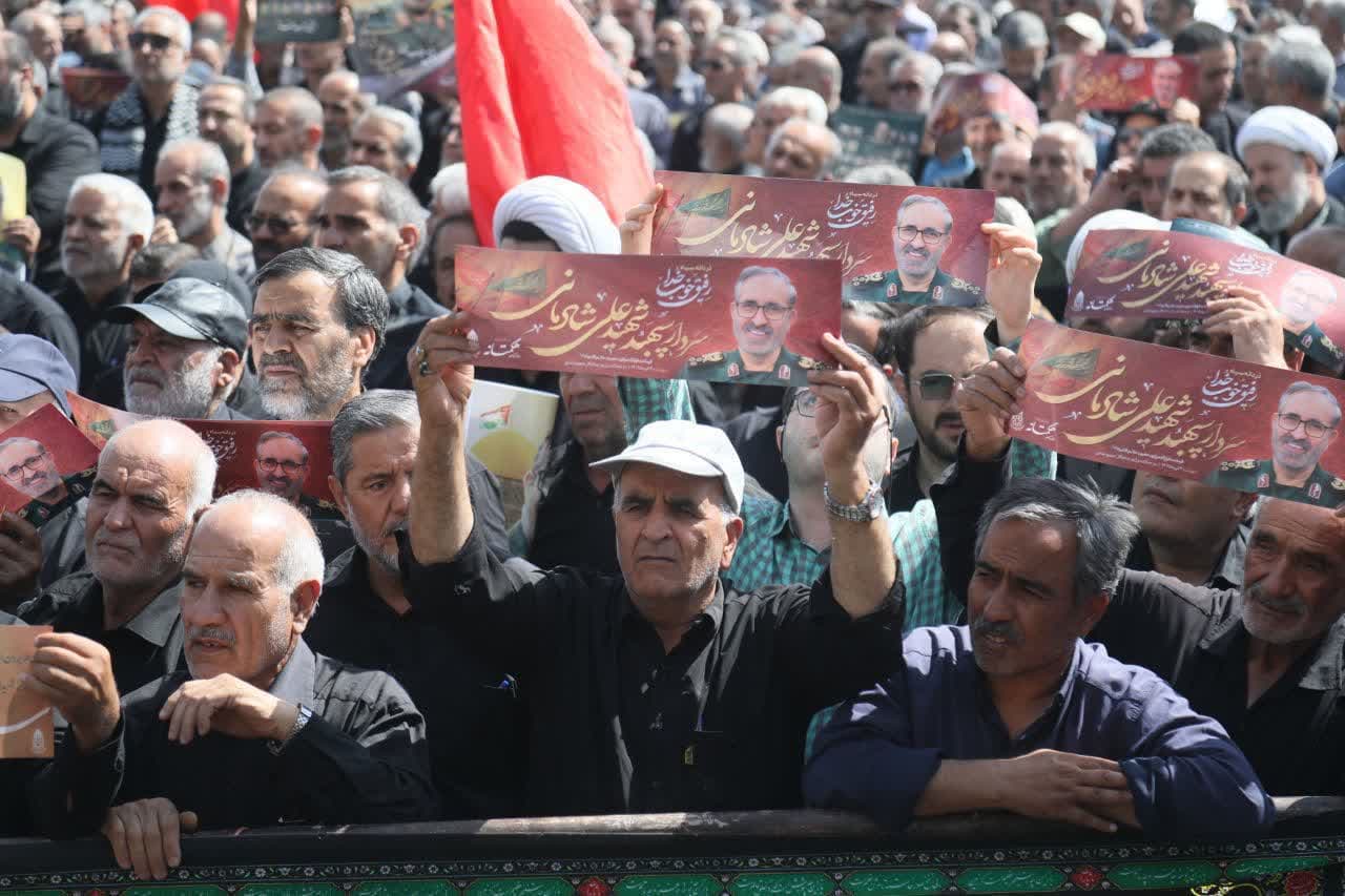 امواج جمعیت، پرچمهای به اهتزاز درآمده سرخ رنگ یا اباعبدالله الحسین علیه السلام، اشکهای داغ و شعارهای پرطنین “مرگ بر اسرائیل و مرگ بر آمریکا” همه گواهی بودند بر ارادت مردم به سرداری که در میدان نبرد، نماد صلابت و ایثار بود و سرانجام با تاج افتخار “شهادت” به دیدار معبودش شتافت.